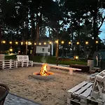 The apartment boasts a range of amenities for your comfort, including an electric kettle and a fridge. Access to a sundeck and barbecue, as well as opportunities for canoeing, hiking, and badminton, are available to guests.